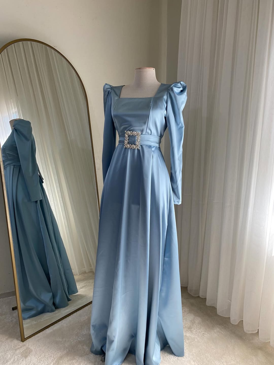 Step into the tranquil charm of Azura Mist, a light blue-grey silk gown that radiates calm sophistication, poise, and timeless beauty. Inspired by the soft haze of morning skies over serene waters, this gown captures the essence of subtle Middle Eastern elegance with a contemporary flair. The smooth silk drapes effortlessly across the body, creating a flowing silhouette that moves gracefully with every step. Designed to enchant, Azura Mist is perfect for evening soirées, weddings, or any special occasion where understated luxury meets dreamy refinement.
