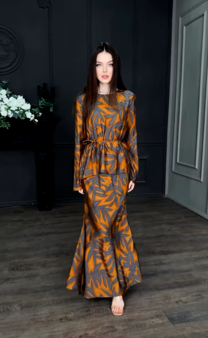 • Striking burnt orange and charcoal leaf print for a bold, nature-inspired look