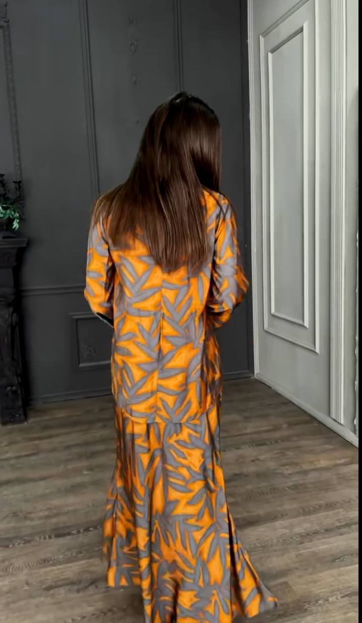 Step into effortless sophistication with the Burnt Bloom Print Dress, a stunning fusion of earthy warmth and artistic flair. Crafted from soft, flowy georgette, this dress features a bold leaf-inspired print in rich tones of burnt orange and deep charcoal, capturing the spirit of autumn with a touch of modern elegance. The relaxed yet refined silhouette flatters every figure, while the cinched waist adds graceful definition. Flowing beautifully with every step, it’s the perfect choice for daytime gatherings, seasonal festivities, or evening soirées that call for understated charm.