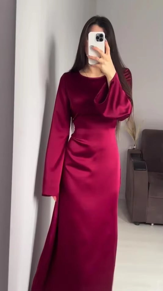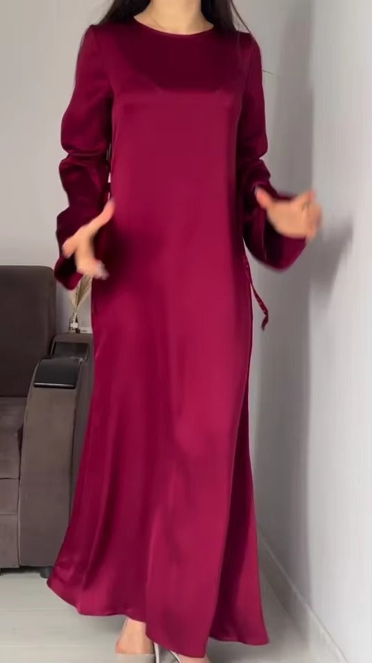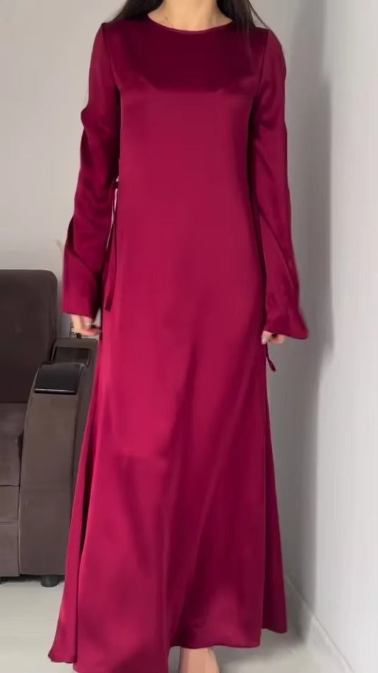 Exude sophistication with the Garnet Glow British Dress, a stunning creation that radiates elegance and charm. Crafted from luxurious satin silk, this dress features a rich garnet hue that captures warmth and refinement. The gracefully flowing silhouette ensures effortless movement and comfort, making it an ideal choice for formal gatherings, evening affairs, and special occasions where you want to make a lasting impression.