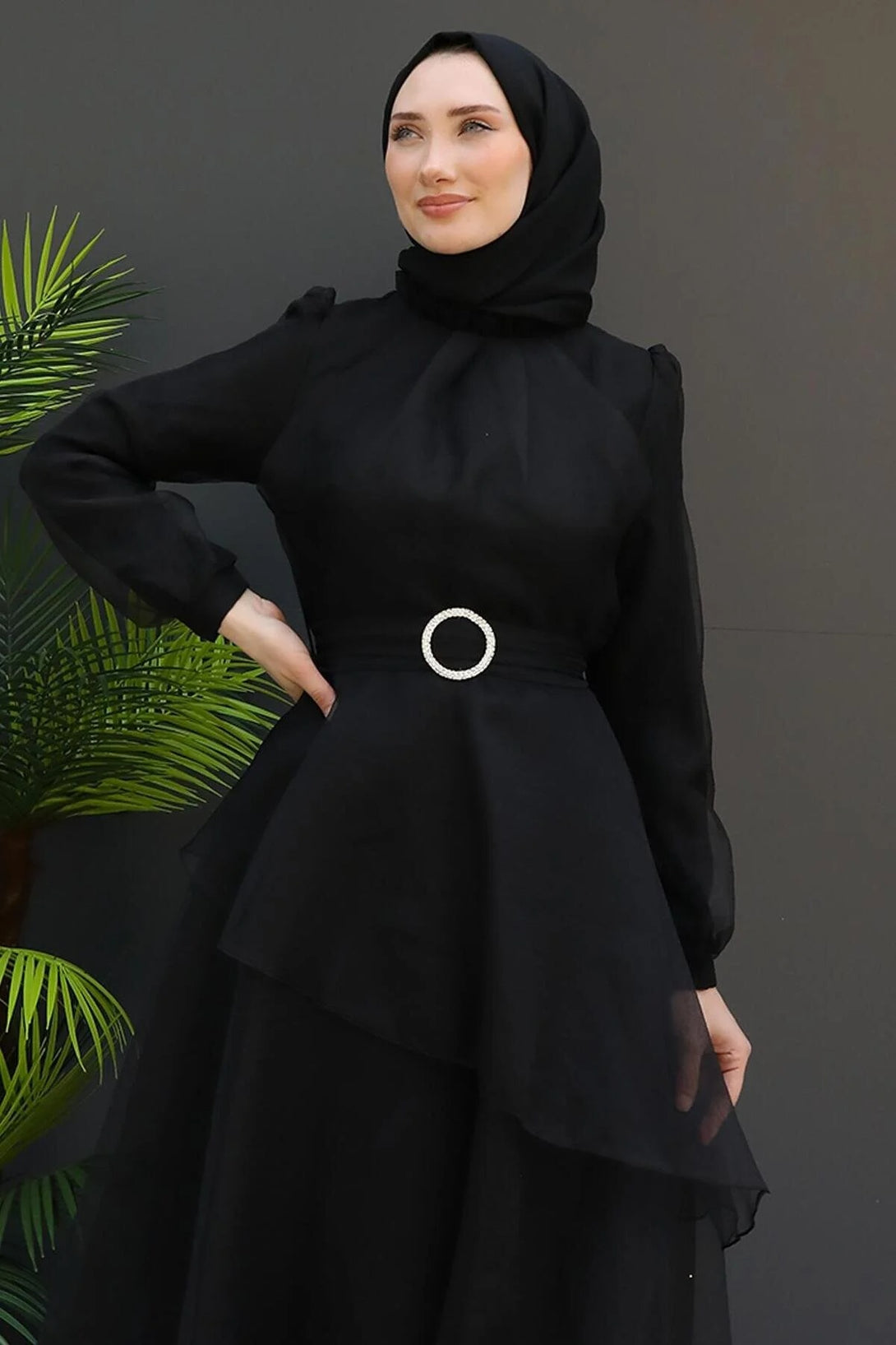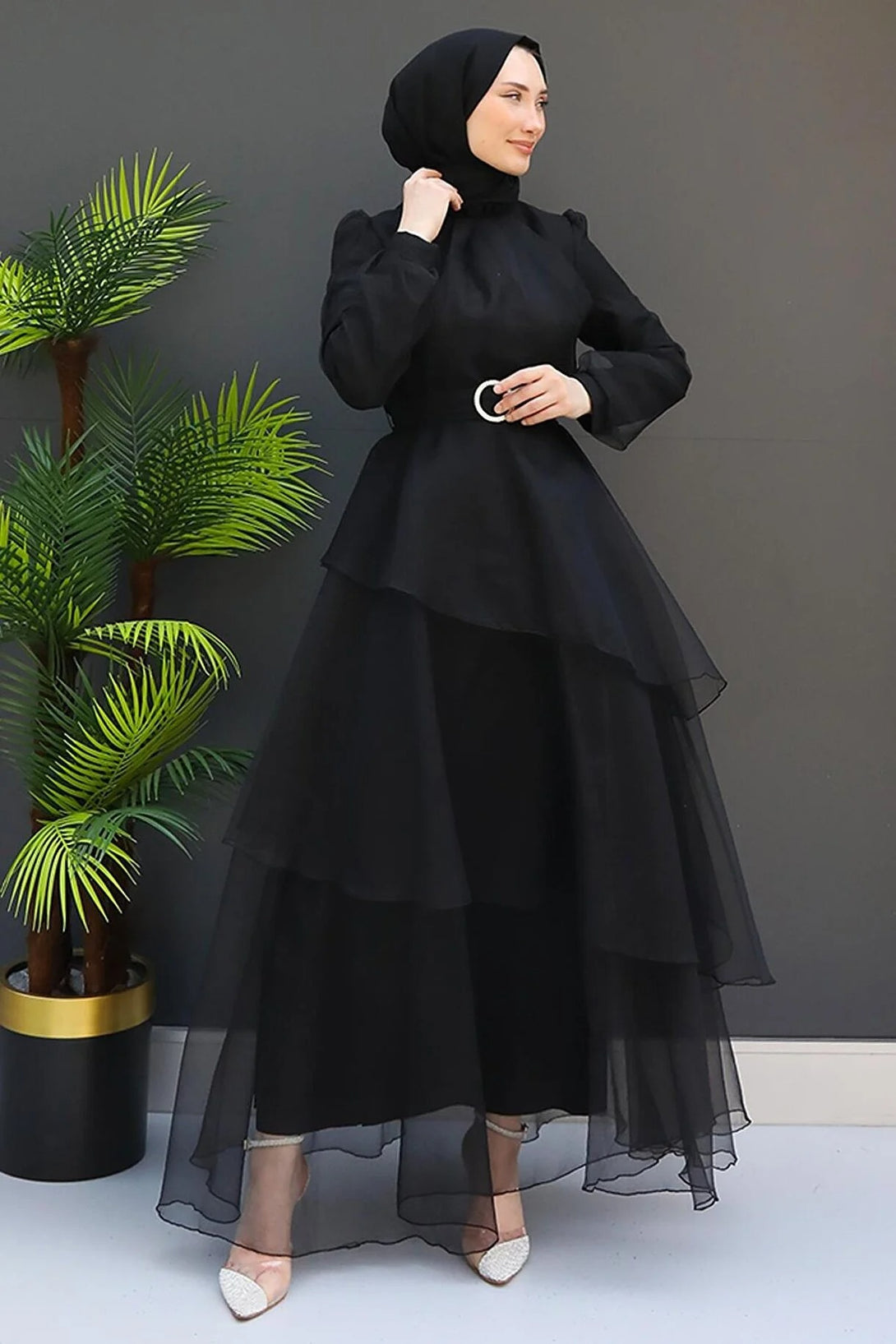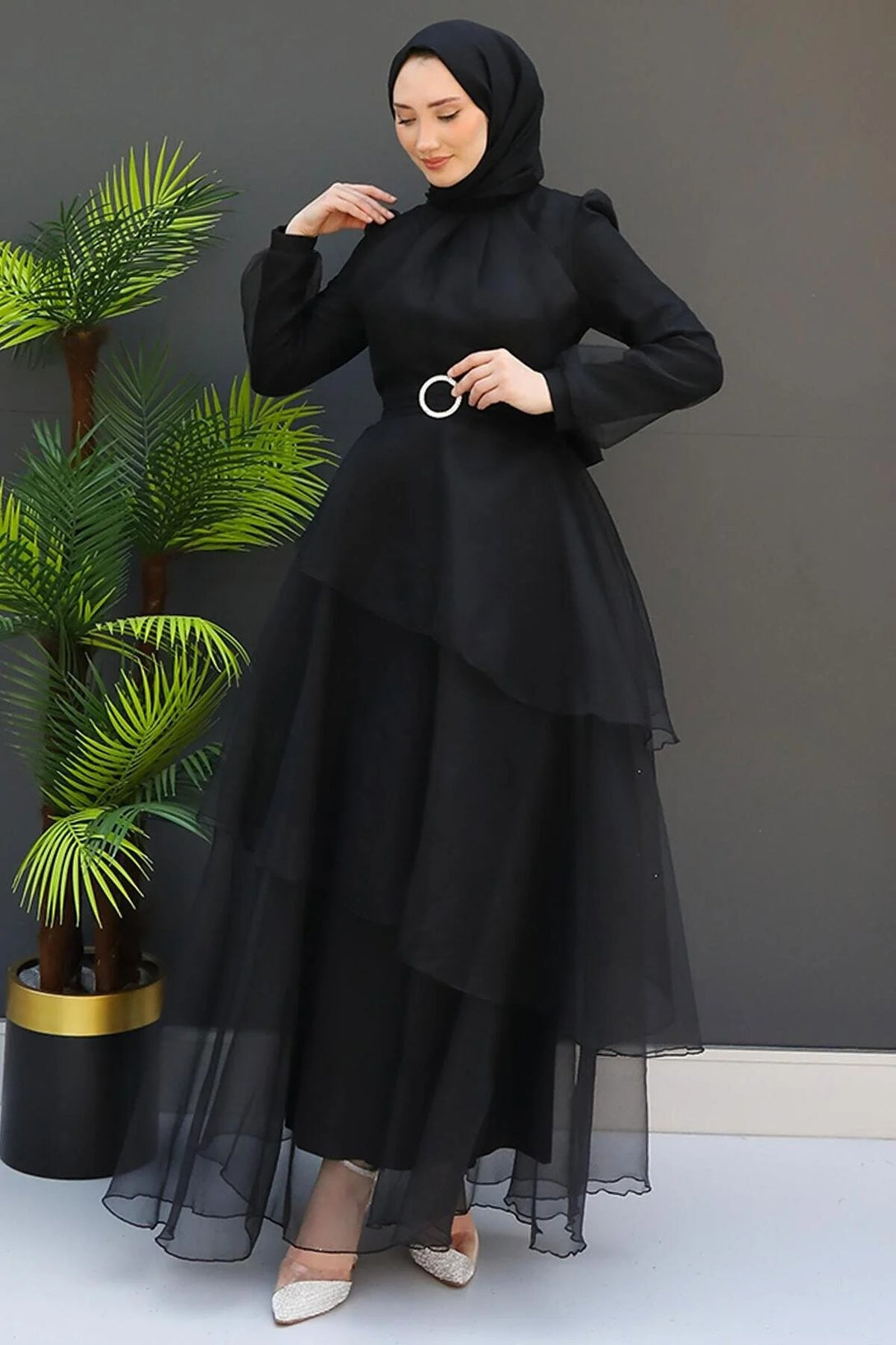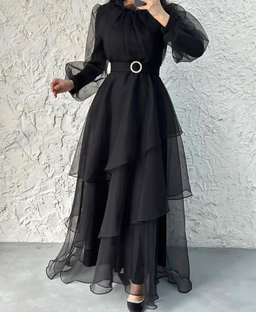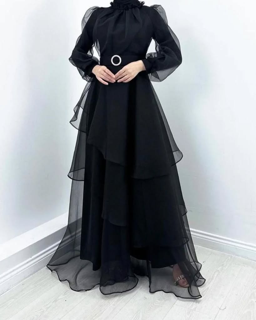Step into refined sophistication with Noora Dust, a flowing black maxi that radiates grace, poise, and timeless charm. Crafted with a luxurious silk inner lining and a sheer net overlay, this gown blends modesty and refinement in every detail. The deep black hue evokes elegance, strength, and serene sophistication — perfect for evening gatherings, formal soirées, or festive celebrations. The smooth silk base ensures comfort and fluid movement, while the translucent net layer adds a soft, ethereal glow. Noora Dust embodies understated luxury, where modest design meets modern elegance.
