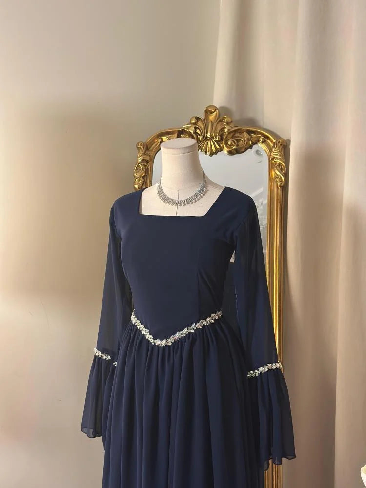 Drift into timeless sophistication with Sapphire Muse, a navy blue georgette masterpiece that captures the serene allure of evening skies and the quiet strength of deep waters. Inspired by the subtle shimmer of moonlight reflecting on sapphire waves, this airy silhouette flows gracefully with every step. Crafted from high-quality georgette, the gown is lightweight yet structured, offering a flattering drape that celebrates movement and modern femininity. Sapphire Muse is the perfect companion for evening garden celebrations, formal soirées, or any occasion where poise meets poetic elegance.