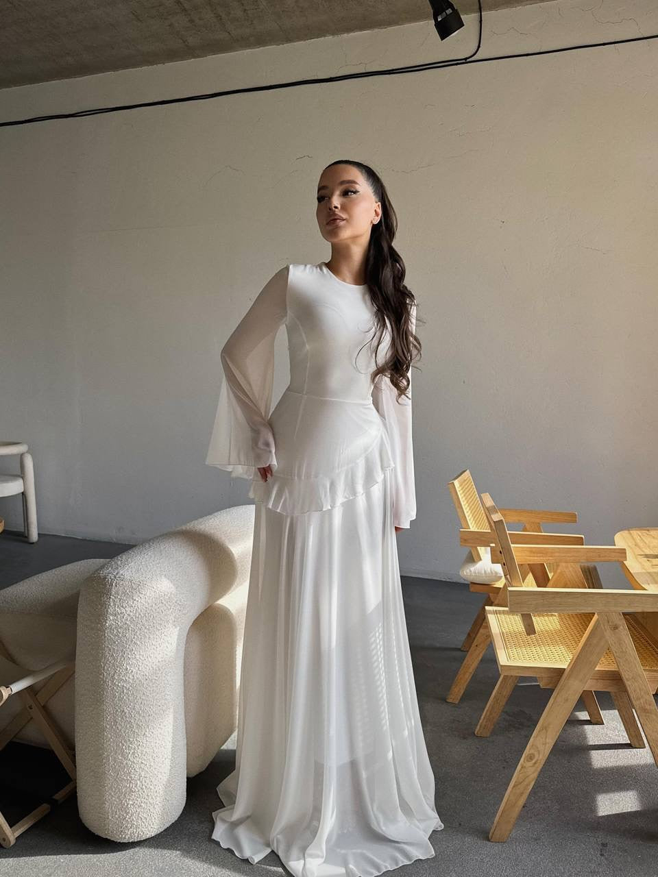 Flowing, floor-length silhouette for an effortlessly refined look